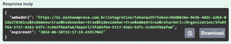 Exemplo com as variáveis preenchidas: https://bi.suaempresa.com.br/integration/tokenauth?token=98b6e796-3b1f-4f2f-abfe-aa2a8a1eadb8&embed=true&returnUrl=/Organization/12201800-1a46-491a-bfe3-6ee5590e372e/Report/a4ee7a1e-6c65-44e7-9a38-06dd8514483c