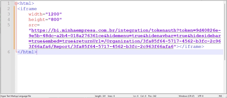 Com isso, você irá abrir um iframe com a seguinte URL: https://bi.suaempresa.com.br/integration/tokenauth?token={token_gerado}&embed=true&returnUrl=/Organization/{Id_da_Organizacao}/Report/{Id_Relatorio}
