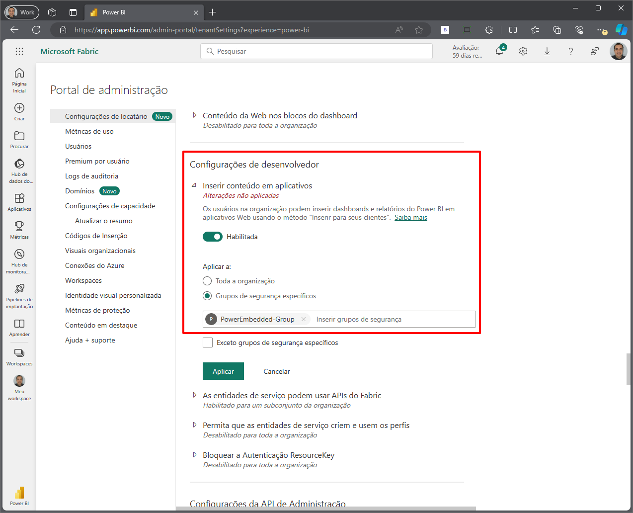 Como liberar as permissões necessárias no Portal de Administração do Power BI