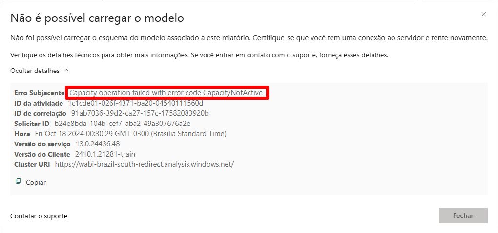 **ATENÇÃO:** Embora não seja muito comum, essas trocas de capacidade durante o horário comercial podem causar indisponibilidade em relatórios daquele workspace, pois podem acontecer casos em que alguns modelos ficam em estado bloqueado, necessitando um processo de atualização do conjunto de dados para desbloquear, o que pode demorar bastante tempo, dependendo do modelo de dados.